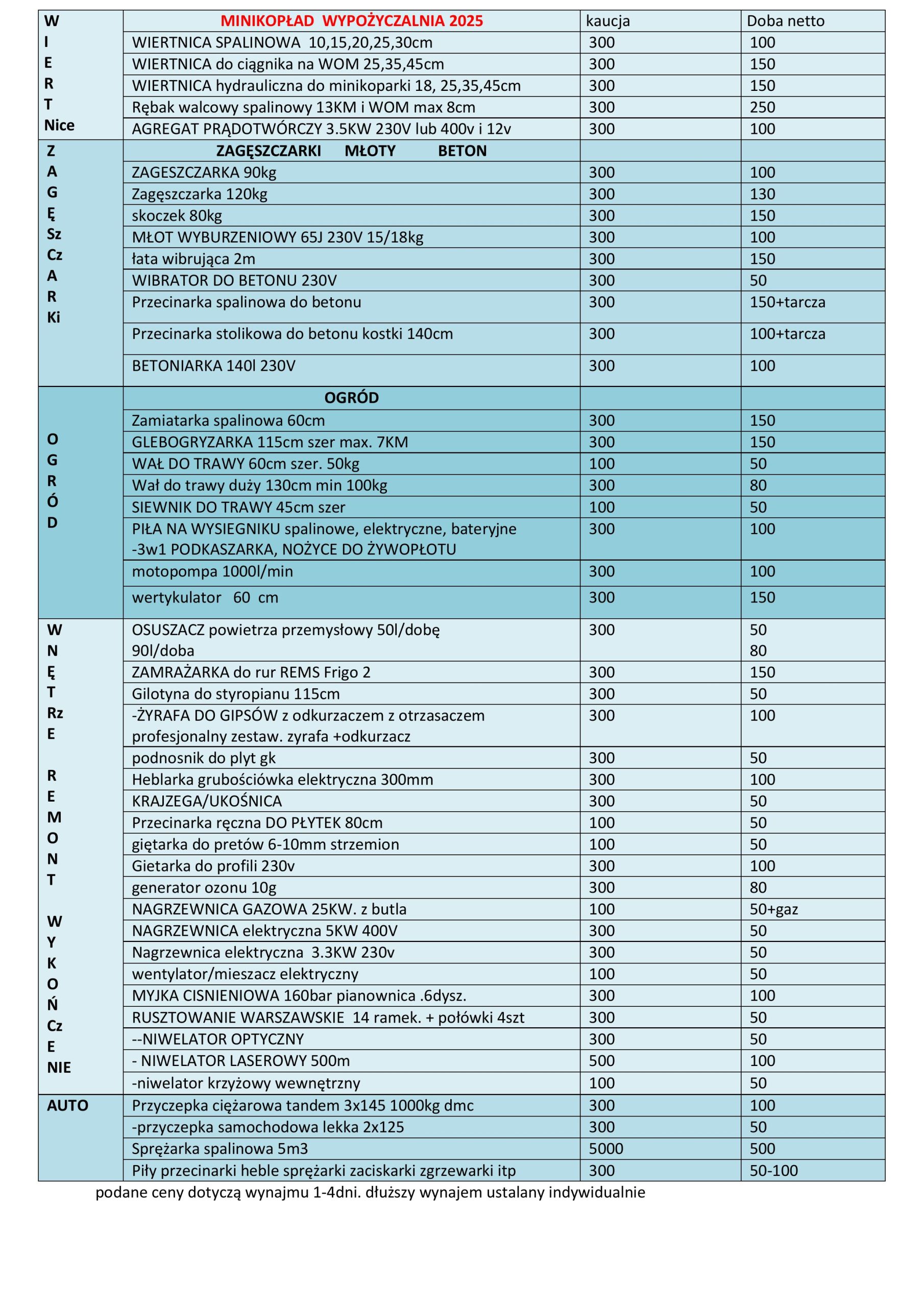 MINIKOPŁAD PRZEMYSŁAW KUROWSKI WYPOZYCZALNIA - USŁUGI