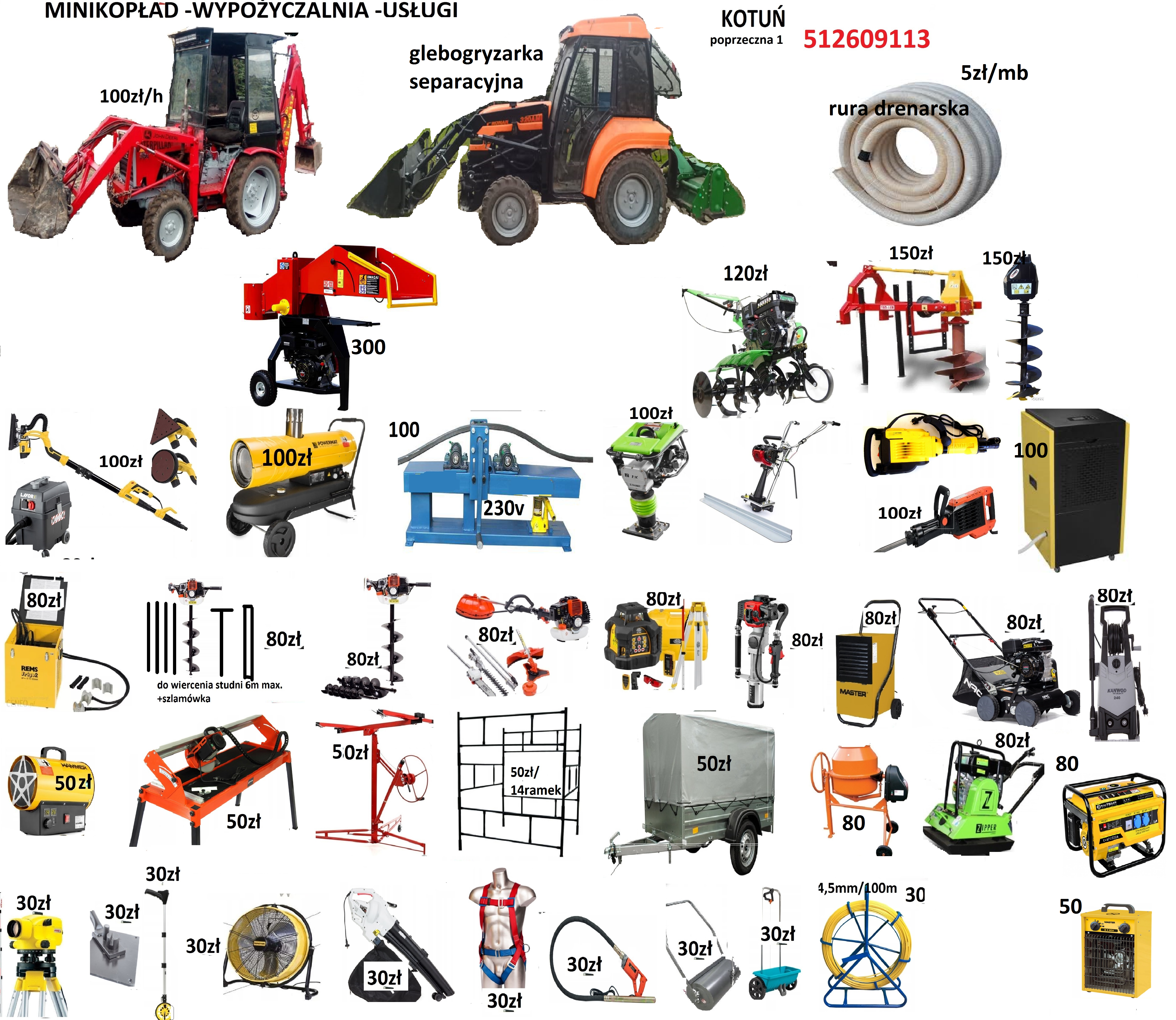 WYPOŻYCZALNIA SPRZETU BUDOWLANEGO firma MINIKOPŁAD OFERUJEMY WYNAJEM SPRZETU BUDOWLANEGO I OGRODNICZEGO. ZAPRASZAMY DO ZAPOZNANIA Z OFERTĄ